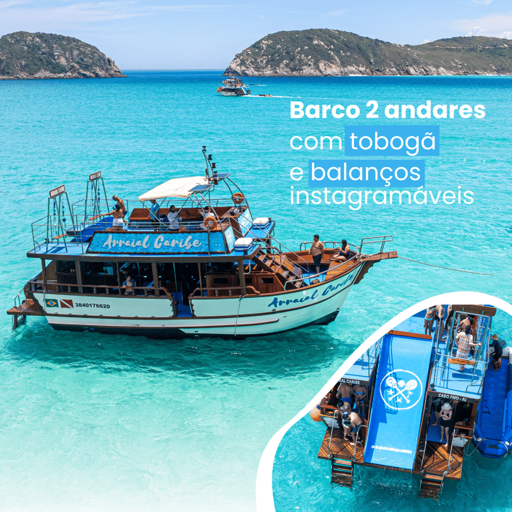 ⏱ Duração média de 4h30min em uma EMBARCAÇÃO de 2 andares COM TOBOÁGUA e BALANÇO 🛝